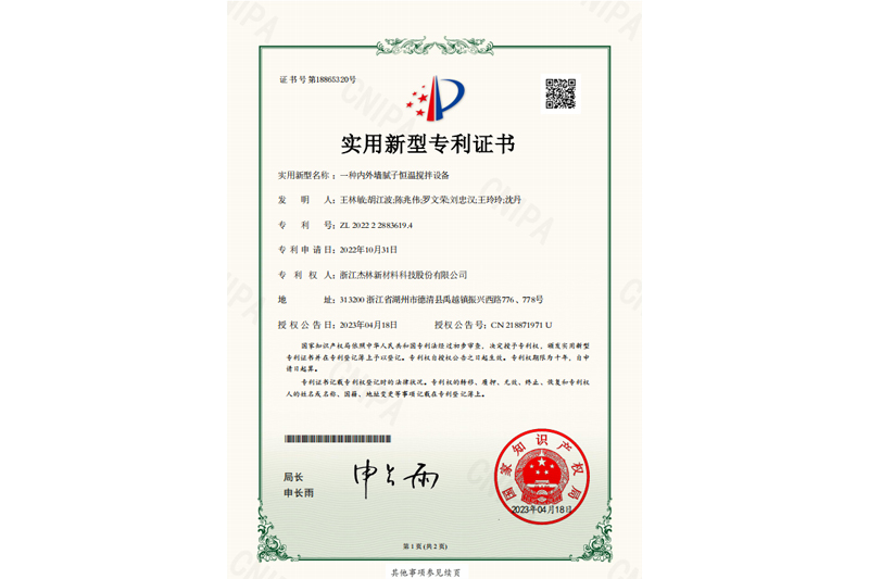 • 一種內外墻膩子恒溫攪拌設備-證書