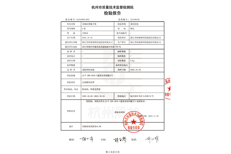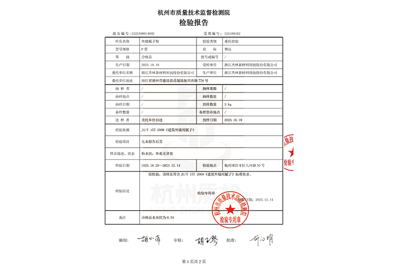 外墻膩?zhàn)臃蹤z驗(yàn)報告